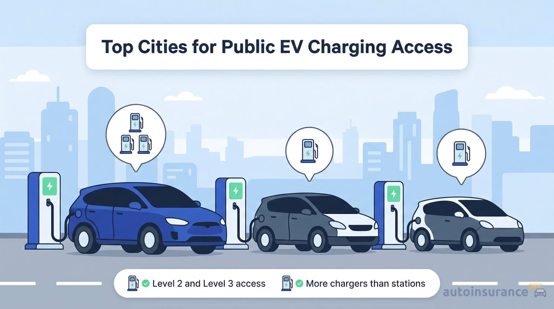 One of the key data points when evaluating the most EV-friendly cities is the availability of public chargers. We looked specifically at Level 2 and Level 3 charging access, as these are the most convenient and commonly used public charging options by EV owners.