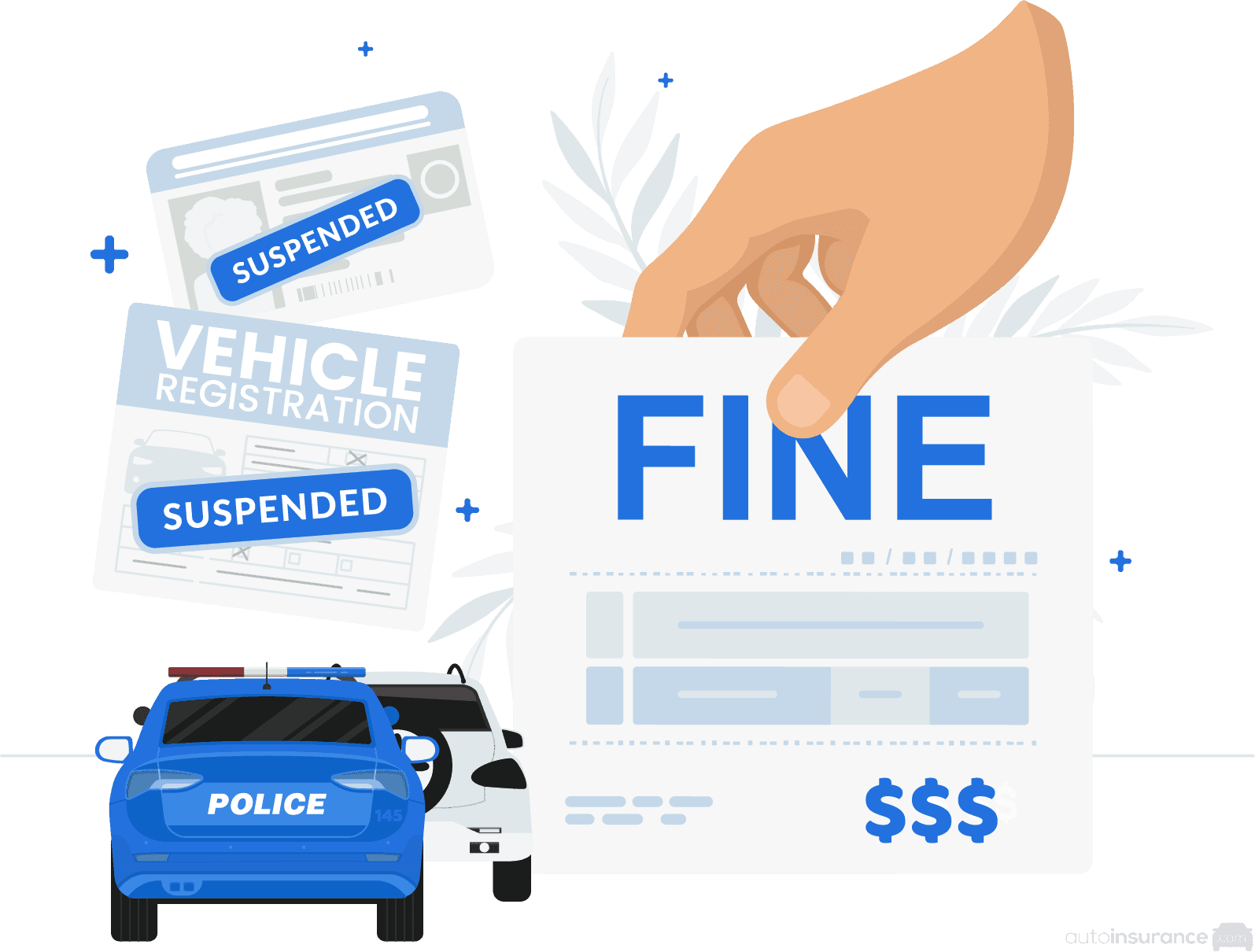 In all states except for Virginia and New Hampshire, it is illegal to drive without insurance. Penalties include fines, possible jail time for a misdemeanor offense, and license or vehicle suspension.