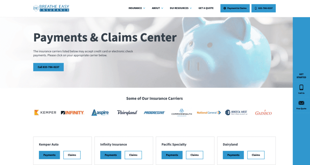 Technically, you can’t file a claim through Breathe Easy, because it’s a broker. Breathe Easy’s Payment & Claims page directs you to the company’s insurer partners. Once you select your provider, you can complete the claims process on the company’s website.