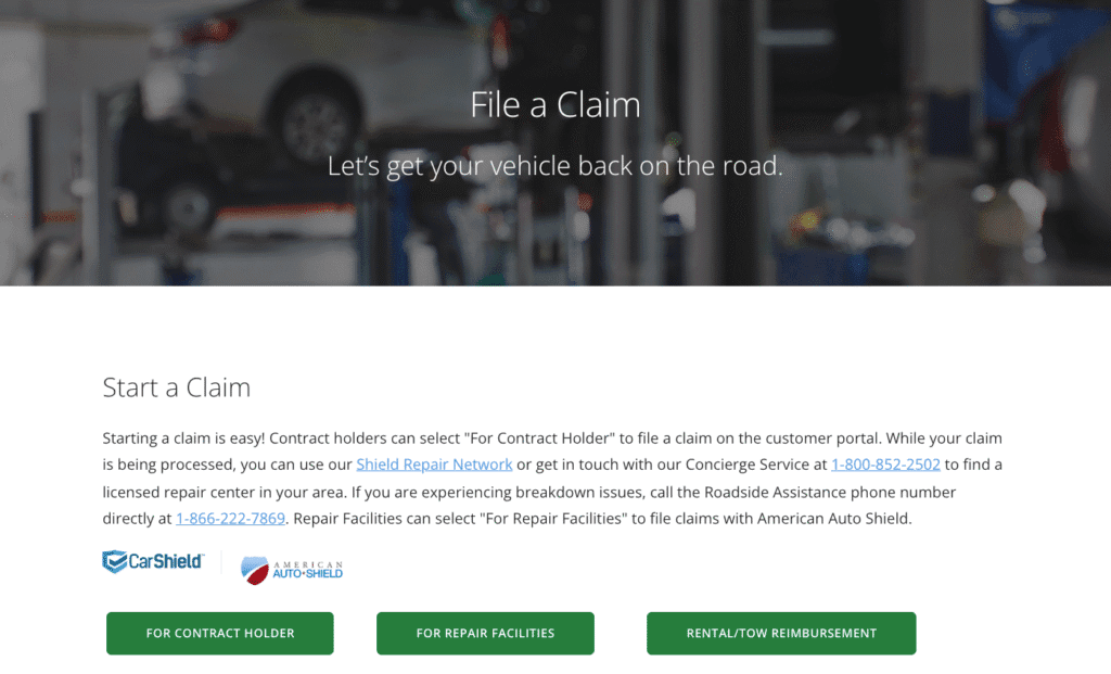 Note that because CarShield is a broker, the claims go through American Auto Shield.